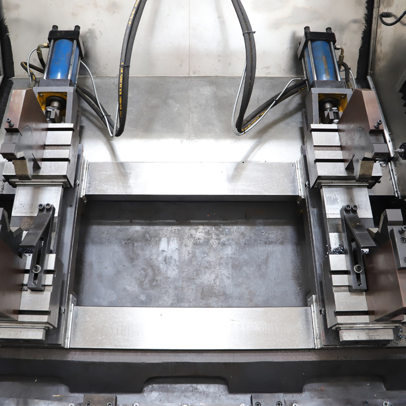 工件采用大行程自定心同步夹钳夹紧,设备设有轴向定位系统,方便大型工件的自动轴向定位功能。